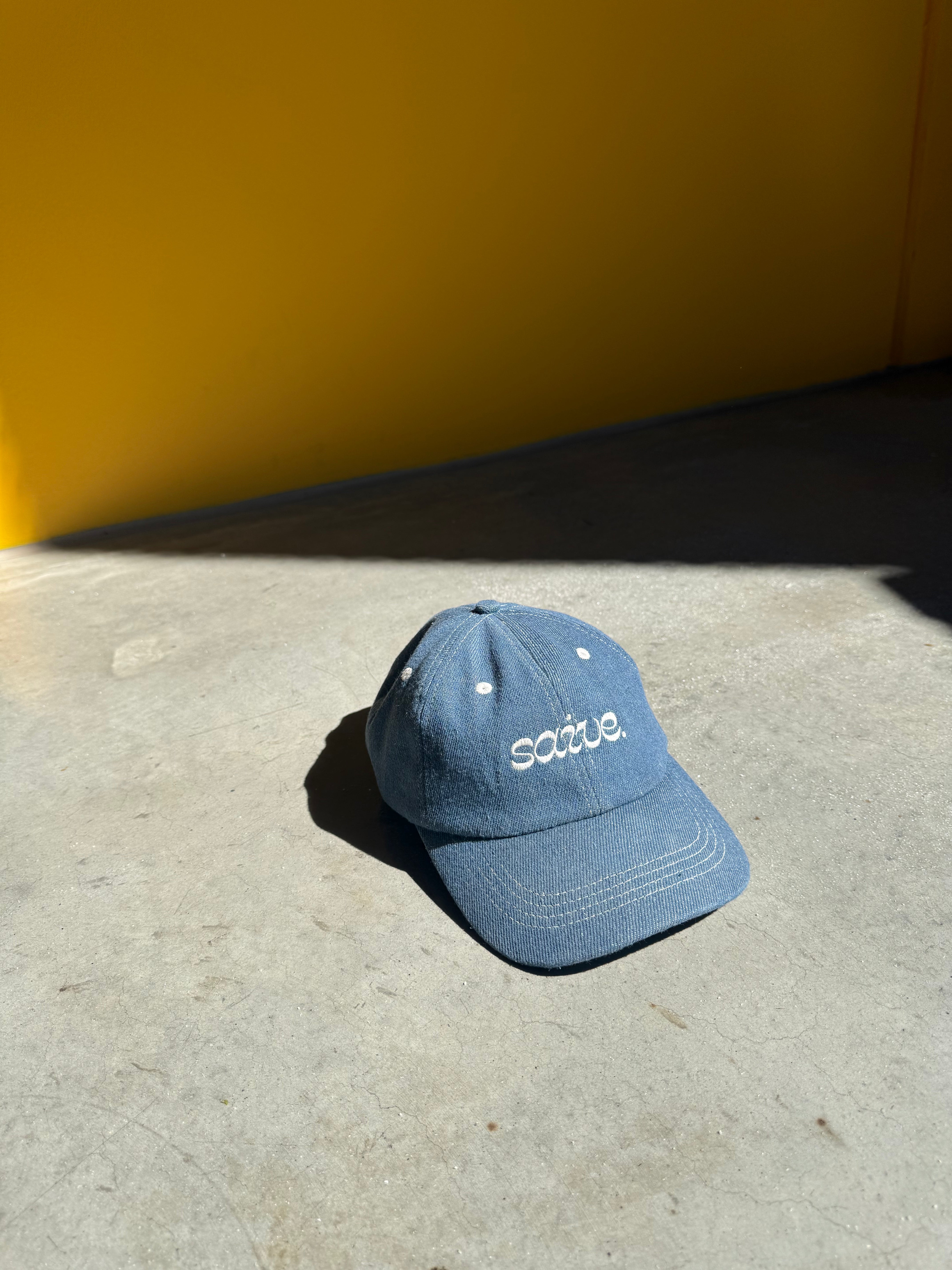 Made from recycled, light-washed denim for a relaxed feel. Designed for everyday comfort, the Saive Cap features an adjustable silver buckle that allows you to customise the fit. The front is finished with our stitched saive logo, with embroidered eyelets added for breathability.